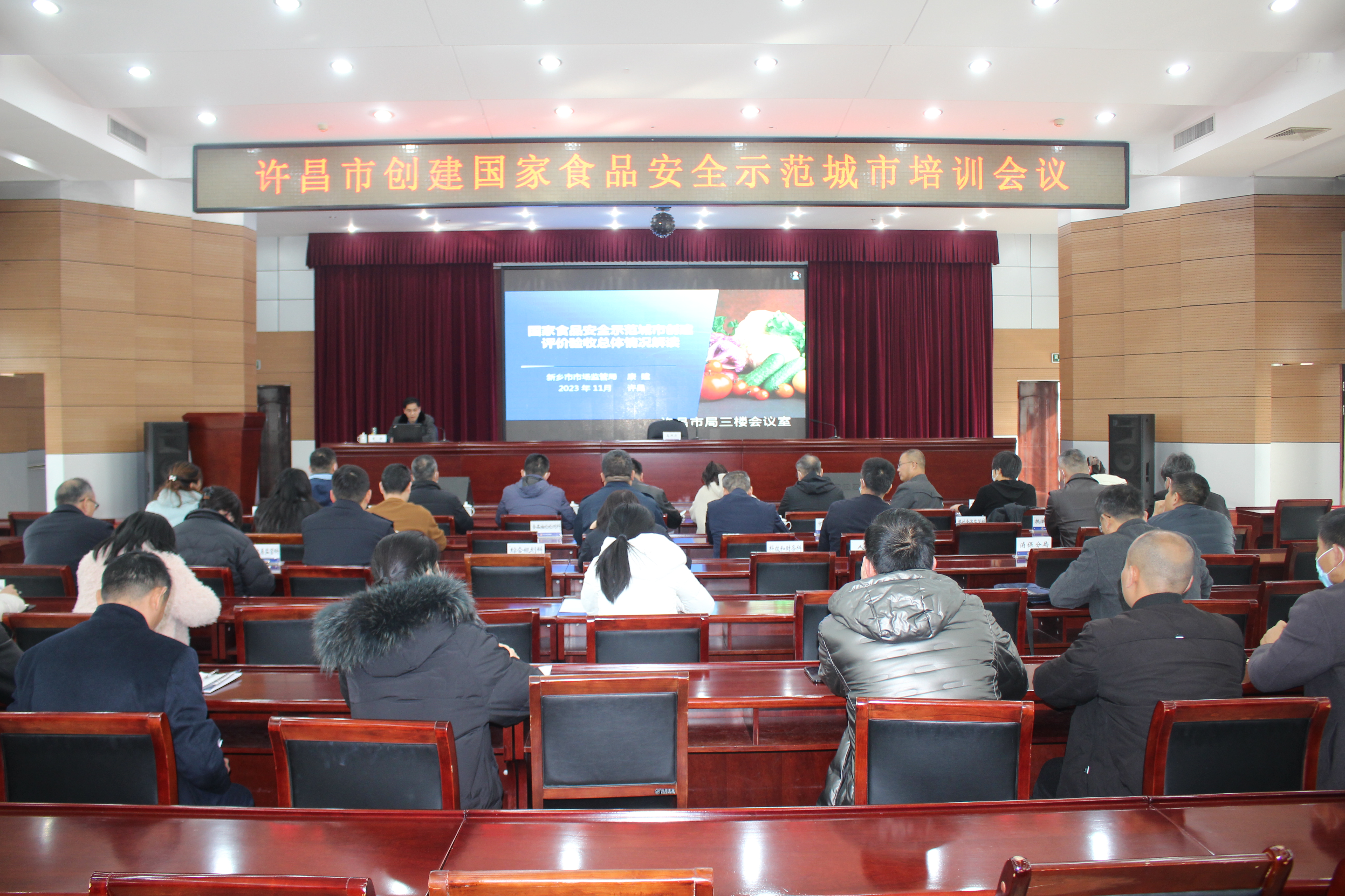 11月29日下午,许昌市举办创建国家食品安全示范城市培训电视电话会议,市市场监管局党组成员、副局长高洪涛主持会议并讲话。市食安委相关成员单位负责同志,市市场监管局、市农业农村局、市教育局、市城市管理局四个督导组全体成员在主会场参加会议;各县(市、区)政府(管委会)分管负责同志,食安办主任、副主任、市场监管所所长等在分会场参加会议。