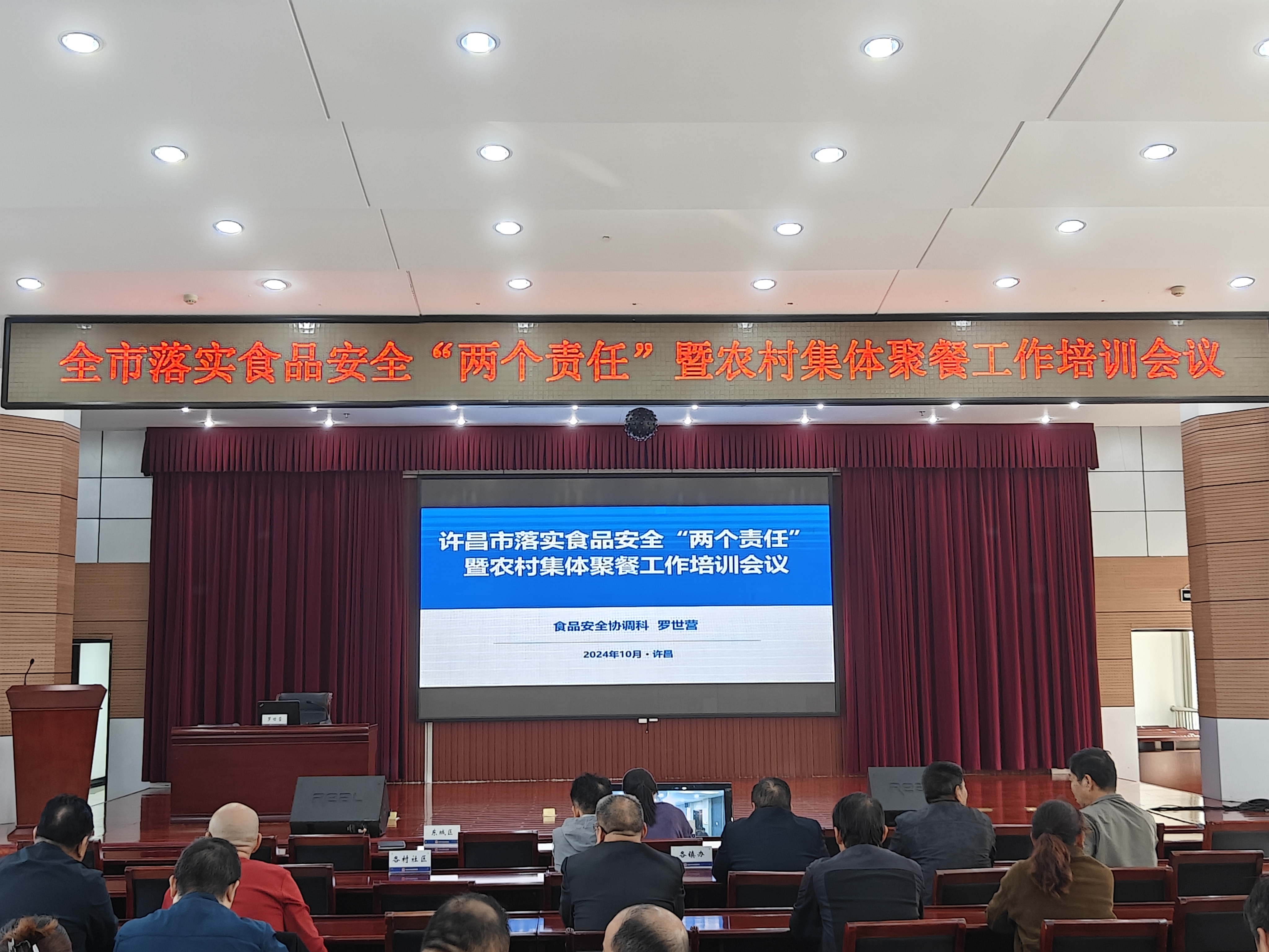 10月31日上午,为进一步推动落实食品安全“两个责任”和规范农村集体聚餐工作,扎实做好迎接2024年度省食安委食品安全评议考核工作,许昌市采取电视电话会议形式召开全市落实食品安全“两个责任”暨农村集体聚餐工作培训会议。各县(市区)落实食品安全“两个责任”工作专班全体人员,各级包保干部,各镇(办)分管食品安全工作负责同志,各村(社区)食品安全协管员、信息员参加培训。