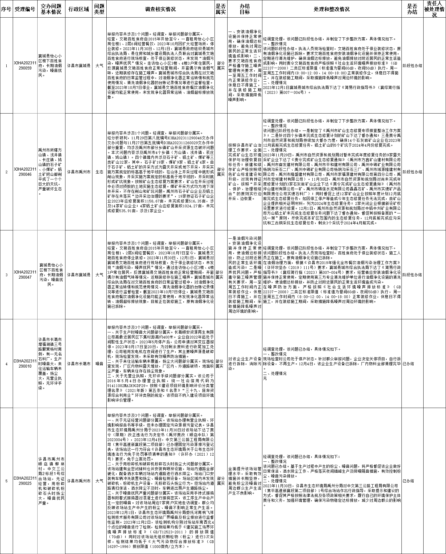 11月30日,中央第二生态环境保护督察组向我市交办第八批5个群众举报件,截至12月9日,已办结2件,正在办理3件,查处和整改情况已按要求进行公开,具体内容请查阅许昌市人民政府网站。