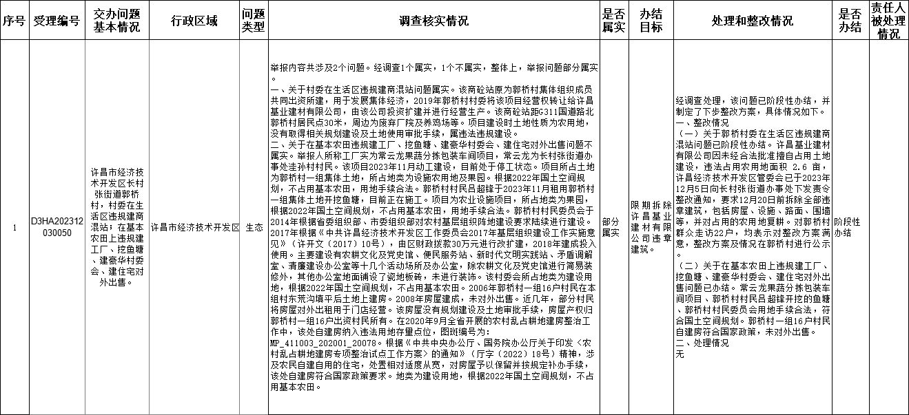 12月4日,中央第二生态环境保护督察组向我市交办第十二批1个群众举报件,截至12月13日,正在办理1件,查处和整改情况已按要求进行公开,具体内容请查阅许昌市人民政府网站。