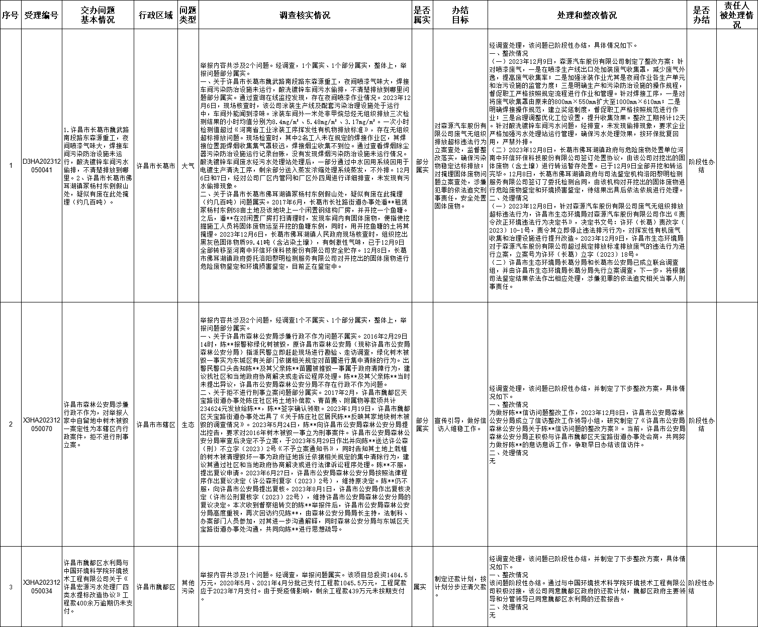 12月6日,中央第二生态环境保护督察组向我市交办第十四批3个群众举报件,截至12月15日,正在办理3件,查处和整改情况已按要求进行公开,具体内容请查阅许昌市人民政府网站。