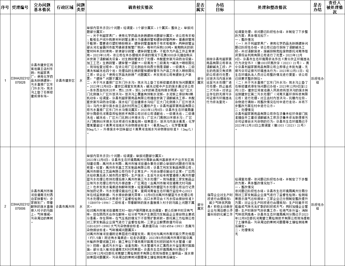 12月8日,中央第二生态环境保护督察组向我市交办第十六批2个群众举报件,截至12月17日,正在办理2件,查处和整改情况已按要求进行公开,具体内容请查阅许昌市人民政府网站。