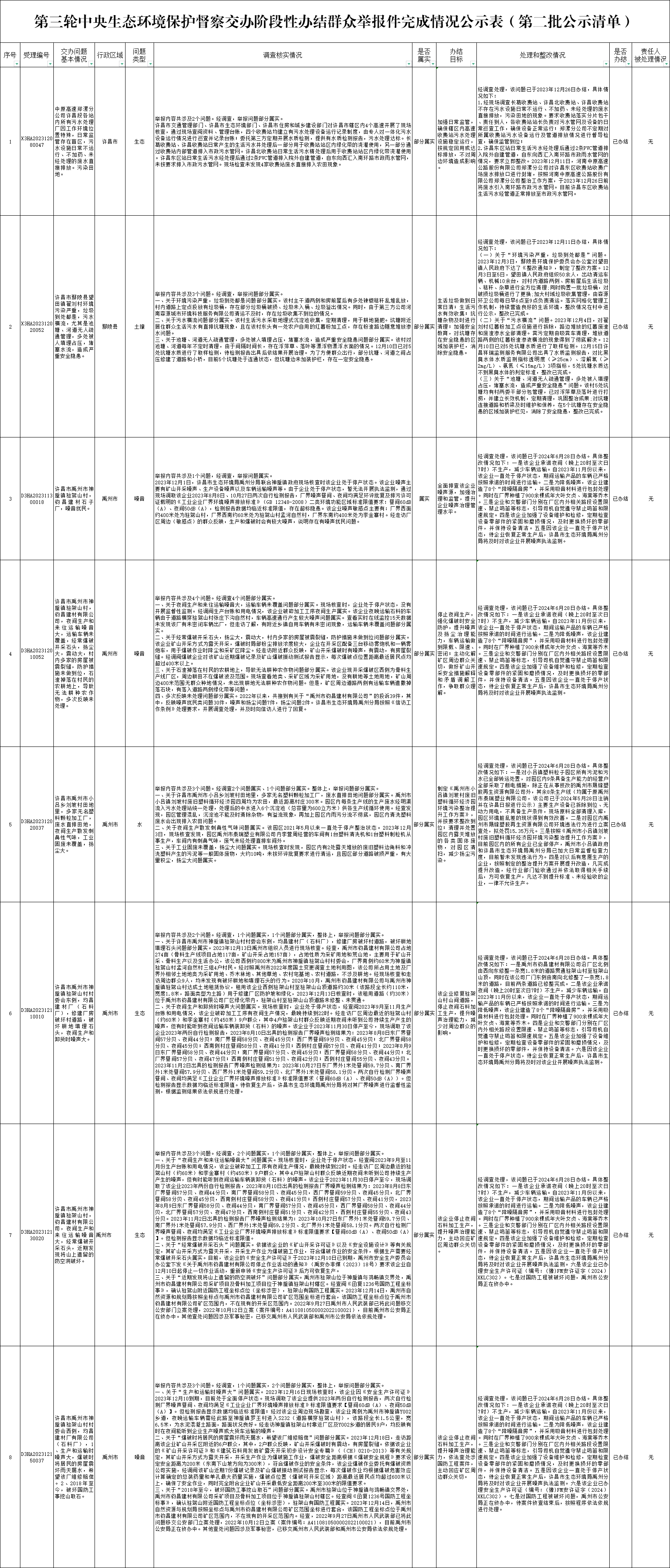 第三轮中央生态环境保护督察交办阶段性办结群众举报件完成情况公示表(第二批公示清单)