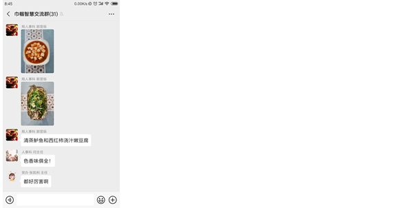 此次活动得到了广大干部职工的积极响应,大家都踊跃报名参与。活动中,大家各显神通,展示了丰富多彩的才艺,色香味俱全的菜肴、精美别致的花艺、温馨可爱的舞蹈……一张张展示才艺的视频和照片源源不断的发到交流群,引发了大家热烈的讨论和交流。