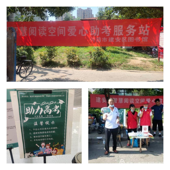 7月7日是2020年高考第一天,为响应全市“学雷锋爱心送考志愿服务活动”,许昌市建安区图书馆派出志愿者服务队早早地来到建安区三高考点,为这里的考生和家长献爱心、送温暖。