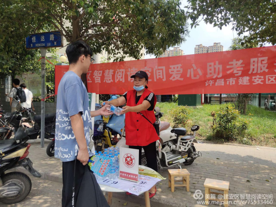 除了冰凉甘甜的纯净水,大家还准备了防暑提神的风油精,以平和烦躁的心情。许昌市建安区图书馆全体工作人员预祝广大考生考试顺利!心想事成!金榜题名!