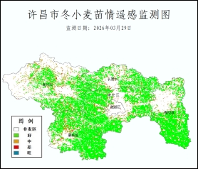[土壤苗情]根据最新遥感苗情监测结果显示,目前全市长势好的面积比例为:80.8%,长势一般的面积比例为:18.5%,长势差的面积比例为:0.7%。(卫星遥感监测受云、雾、大气条件和反演方法等因素影响,与实测数据相比存在一定误差)